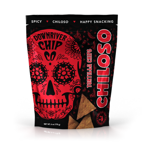 These spicy Chiloso tortilla chips from The Downriver Chip Co pack bold chili heat and deep savory flavor in every crunchy bite.